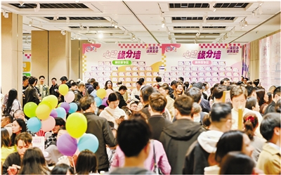 第十四届相亲嘉年华现场的缘分墙前,青年职工络绎不绝。