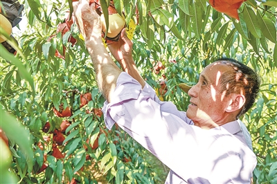 2020年,俞忠良引进“金秋红蜜”桃苗时,许多桃农看了直摇头:“8月以后,桃树怎么可能结出甜桃?”俞忠良却有着自己的信念:“咱们大观山蜜桃品质虽好,但七八月份集中上市,市场容易饱和。”他敏锐地意识到,唯有拉开产季,才能让“好桃卖好价”。