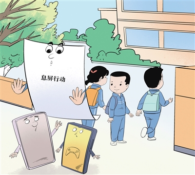 近日,教育部《进一步加强中小学生心理健康工作十条措施》提出,加强学生网络素养教育,培养学生网络安全和网络法治意识,帮助学生养成良好用网习惯。规范管理学生带入学校的智能终端产品,严禁将手机等电子产品带入课堂。鼓励学生和家长共同开展“息屏行动”,减少对网络过度依赖。 漫画 勾犇