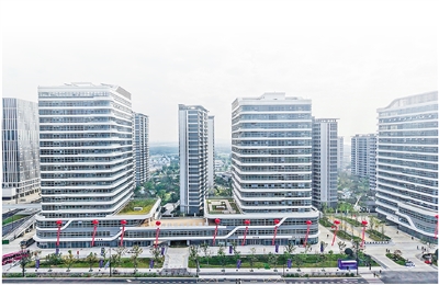 总建筑面积28万平方米的融杭数贸港,集数字贸易、产业延伸、服务配套等功能于一体,分南北两个片区,共8幢楼宇。目前已招引企业40余家,整体入驻率超70%,预计今年可新增出口35亿元以上。