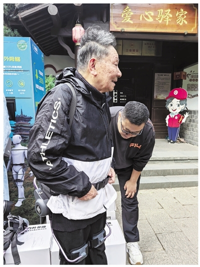 本报讯(记者 华炜 文/摄 拱墅微融圈 柳景春)入秋后的杭城,登高赏秋是件十分惬意的事情,但对于登山新手或者老年人群来说,体力是道难以逾越的坎。最近,半山国家森林公园引入了一批外骨骼机器人,并且将常态化提供共享租赁服务。“不累,真不累!”昨天上午,70岁的市民张先生穿戴上外骨骼机器人,在半山国家森林公园健步如飞,这次新奇的体验令他印象深刻。