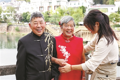 下姜村为老人拍“结婚照”。
