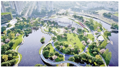 杭州青少年活动中心城西分中心(北侧鸟瞰)效果图。 杭州云城建设管理指挥部供图