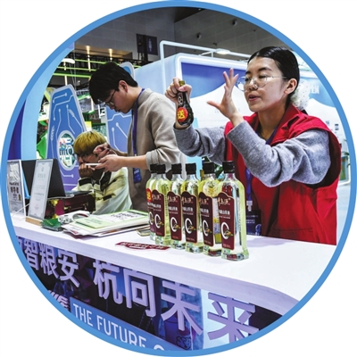 新成果、新技术的应用也在时刻改变人们的“餐桌”,“杭州馆”内还展示了多家杭州头部粮油企业的创新成果。宏盛粮油集团投资10亿元新建的粮油产业项目首创“粮油工业上楼”模式,投产后年产值将突破30亿元,进一步提升企业粮食应急保障能力;“益嘉丰厨”中央厨房项目每天能生产6万份便当和20吨成品,依托全程冷链构建城市餐饮供应网络;浙江久晟油茶科技公司研发5A冷榨技术,并用数字桥梁链接产地直达餐桌,电商平台茶油类销售额全国第一。