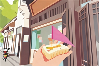 这家店的重阳糕是用米粉、栗子、桂花做的,香甜可口。更要紧的是,糕上一定插有一面小彩旗,没有彩旗的重阳糕仿佛就没了灵魂。