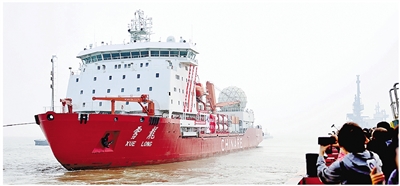 图为11月1日,“雪龙”号驶离中国极地考察国内基地码头。