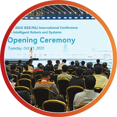 10月21日,2025年智能机器人与系统国际会议在杭开幕,来自全球60多个国家和地区的7700余名专家学者、企业代表齐聚杭州,围绕“人机协作前沿”主题开展交流、共话合作。图为大会现场。