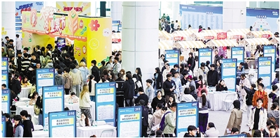 此外,本次招聘会还开辟了招聘“云平台”,组织了比亚迪等7家名企开展“直播带岗”,首日便吸引了31.3万人次观看。招聘会还创新打造了“就业生态体验区”,现场以“AI+游园”模式重构传统招聘场景,让求职像“逛展”;“AI+就业充电站”集成岗位匹配、模拟面试等功能,让求职更高效轻松;“创业集市”汇聚无人机、3D打印、黄酒新工艺等30个优质创业项目,为青年创客提供展示成果、拓展渠道的平台;“政策游园打卡区”推出飞盘大闯关、政策大转盘、政策叠叠乐等互动游戏,让大学生在趣味体验中了解人才政策,感受绍兴“产城人文”融合发展的城市魅力与活力。