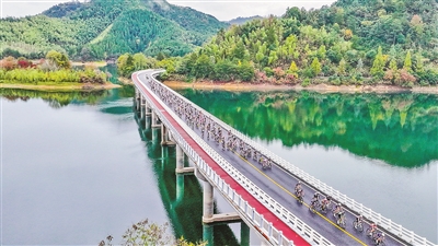 第十九届中国环千岛湖公路自行车赛。王建才 摄