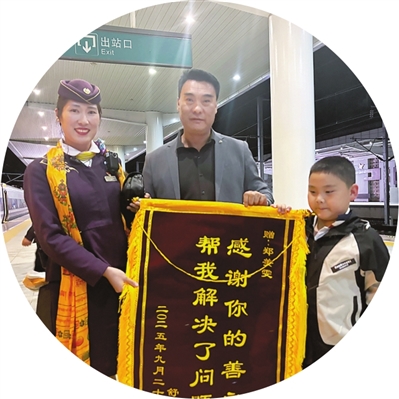 本报讯(通讯员 王椰萍 记者 杨怡微)“谢谢列车长阿姨!”在德清站站台上,一个小男孩和他的父亲手捧锦旗献给列车长郑美雯,眼中满是感激。这温暖的一幕,源于不久前一趟列车上的暖心相助。