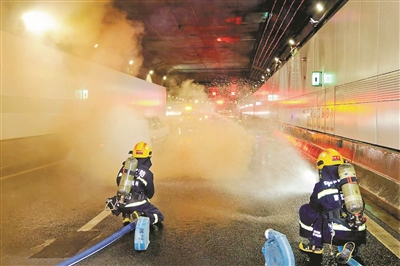 本报讯(记者 任彦 通讯员 周婧)为应对11月22日零时起钱江三桥封闭施工带来的交通格局变化,昨日下午,一场“真刀真枪”的压力测试——代号为“协同联动·畅通动脉”的综合应急演练在望江隧道内上演,由杭州市城管部门牵头,公安、消防等多部门协同,共同检验隧道在极端情况下的应急处置硬实力。