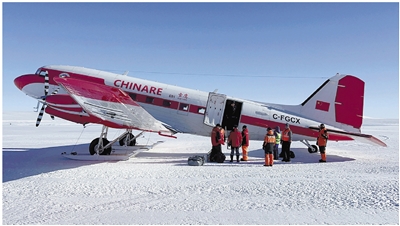 图为北京时间14日23时37分,中国极地固定翼飞机“雪鹰601”飞抵南极俄罗斯新拉扎列夫站,成功完成对1名俄罗斯南极考察站病员的转运与救援。 新华社发(祝标 摄)