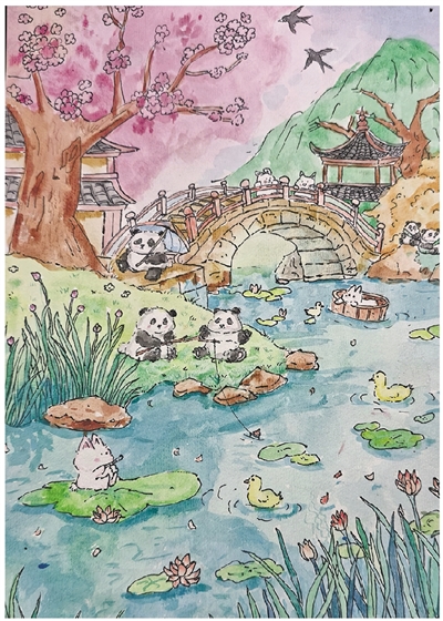 除了语言艺术,画画与声乐是我生活里的“温柔伙伴”。握着画笔时,我会沉浸在色彩与线条的世界里,将脑海中的奇思妙想、眼中的美好瞬间,都化作画布上的生动作品;作为班班有歌声的主唱,我用纯净的嗓音传递情绪,无论是轻快的童谣还是时下流行音乐,都能让我感受到音乐带来的治愈与快乐。