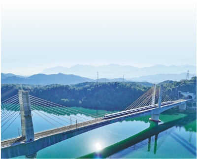 试运行列车驶过杭衢高铁新安江特大桥。董佳怡 彭逸群 摄