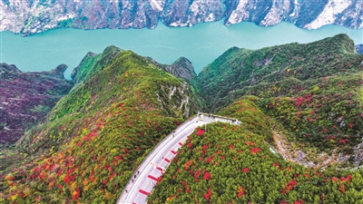 冬日时节,位于重庆市巫山县境内的长江巫峡一带被渐次变红的红叶点缀,呈现出如诗如画的美景。巫山县拥有120万亩、近200种红叶,红叶观赏期从11月延续至次年1月。