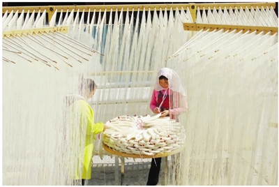 2022年,饭店的美食团队专门到我的老家常山,探访常山贡面的口感奥秘。大家见识了比人还高的面架,欣赏了细如银丝的面条,也亲自体验了上架、晒面等工序。