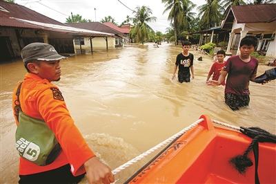 11月24日,在印度尼西亚西苏门答腊省,人们在洪水中行走。 近日,印度尼西亚西苏门答腊省遭遇强降雨并引发洪水,数百户位于河岸的民居被淹。印尼雨季通常为11月至次年4月,山体滑坡和洪涝灾害多发。受气候变化影响,近年来印尼雨季持续时间延长,降雨强度增加,引发的灾害也更为严重。 新华社发(安德里·马迪安赛亚摄)