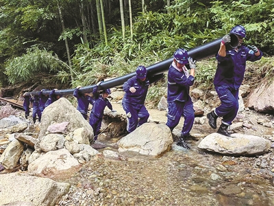 在突发抢险、应急处置等工作中,市水务集团已实现了水务应急力量在全市层面的统一管理、高效调度,成为各个区域在应急抢修中的重要支援力量。2023年7月下旬,富阳遭遇罕见暴雨引发山洪,导致大源镇、上官乡等地供水设施受损、居民用水受影响。市水务集团第一时间组建专项支援队伍驰援富阳,积极参与到山洪过后乡村供水设施的恢复工作中。相关举措不仅保障了当地群众用水需求,更赢得属地政府和社会各界广泛认可。