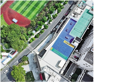 改造后的“蚕花港”邻里综合体和屋顶健身场地(俯瞰图)