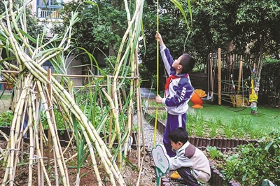 孩子的往来是双向的。幼儿园的弟弟妹妹来小学“打卡”,小学的哥哥姐姐也常回幼儿园“串门”。“我前不久刚回园参加了甘蔗丰收节,下次想去烘焙区教弟弟妹妹做蛋糕。”一位六年级男生说道。旁边的女生也跃跃欲试,打算教他们制作小乐器。