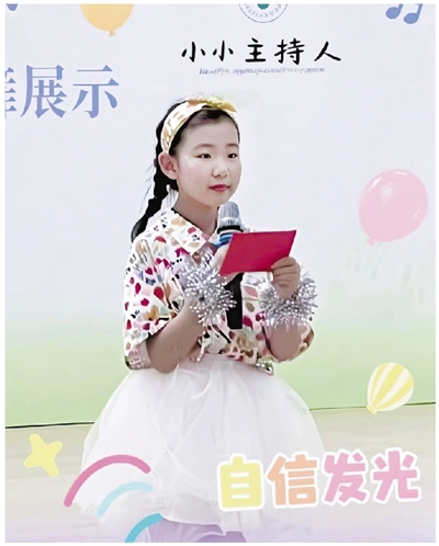 大家好,我是来自夏衍第二小学四年级(1)班的潘梓晴,有着多元化的兴趣爱好,如歌唱、舞蹈、绘画、主持及戏剧。这些爱好皆需投入大量的时间与精力,当他人玩耍时,我却在不停练习。家人总会问我累不累,我总是笑着回答:“不累,我享受这个过程。”