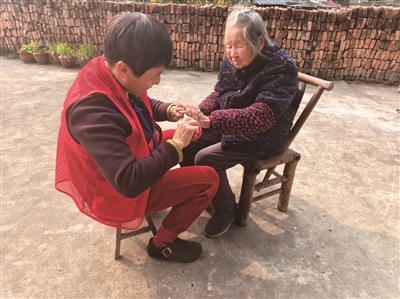 在祝家村,孙丽萍的角色已超出助老员的职责。她为93岁的倪爷爷擦背、讲新鲜事;为75岁的李奶奶送生活用品;为93岁的谢奶奶陪聊解闷。老人们常说:“小孙啊,比亲闺女还贴心。”她的服务包里常备针线盒、老花镜、常用药品等“百宝”,随时应对各种需求。