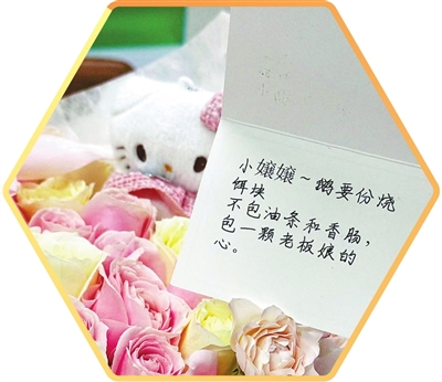 “他那天送花来,我们几个都吓了一跳。从来没有这样收到过礼物啊。”金女士说,姐妹几个已经当妈了,所以一下子都摸不着头脑,直到看到纸条,想起来了,是小陈。