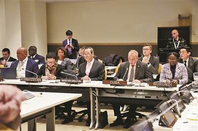图为12月9日,在纽约联合国总部,创始成员国的代表出席“全球治理之友小组”启动会议。