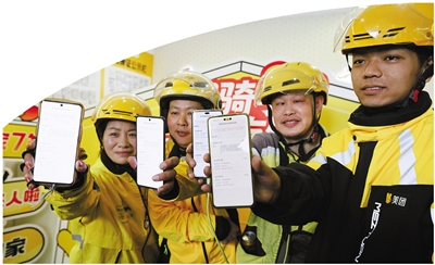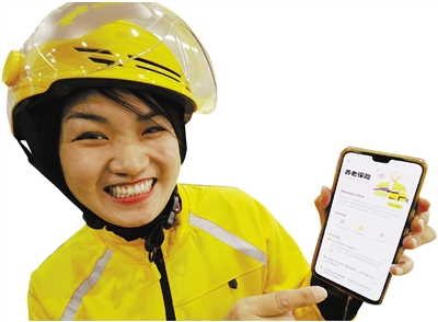 骑手们纷纷掏出手机,展示自己的养老保险补贴到账了。