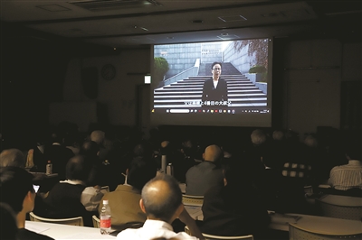 12月11日,在日本东京举办的南京大屠杀证言集会上,南京大屠杀幸存者后代曹玉莉以视频方式提供证言。 新华社记者 李子越 摄