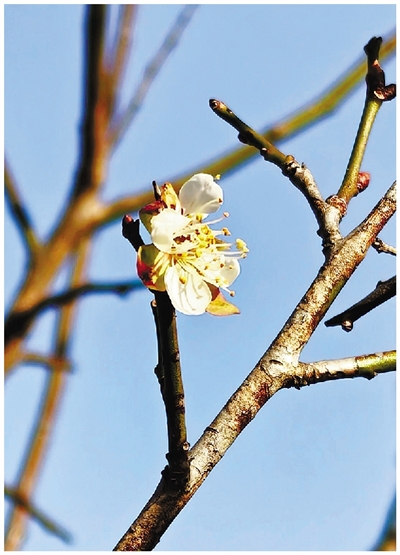 走入园中,循香而去,可以看到蜡梅园中的“先头部队”已经静悄悄地开放了,而满枝的黄色花苞也预示着一场香气盛宴即将开启。更让人惊喜的是,白梅也开了,要知道,正常情况下白梅要来年的1至2月份才会开。