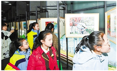 “妈妈,找到了!”湖畔学校邵曼妮同学兴奋地指着自己的作品,招呼妈妈拍照。活动当天,离杭州图书馆不远的钱江新城地下南街(市民中心附近),本届大赛的75幅一等奖作品同步展出,吸引不少市民驻足欣赏。