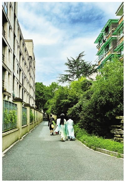 距勾山府治不远的孔庙门口,有棵古老的大香樟,百年风雨,亭亭如盖,这是一个历尽沧桑而未变的重要标志。大香樟西南侧,有条石板小巷叫赐玉弄,它由东向西延伸,与北面的阿太庙弄相接。这条小弄堂的前身,其实不叫赐玉弄,民国电灯公司电费收缴单上写作司狱弄。这个地名人们认为它难听、晦气,后以其谐音改名为赐玉弄,就是今天“吴山人家”前面的这条长巷。某风和日丽之日,两个汉服小女子施施然走过这条历史小巷。汉服飘飘,春和景明,官府牢狱早已相隔百年之远了。