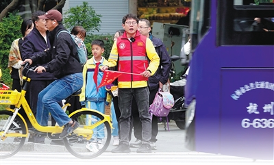 早高峰时段,“中国好人”、“清林爱心公益小哥驿站”负责人彭清林和他的“外卖小哥”同事们手举文明劝导牌,与交警、志愿者一起维护路口的交通秩序,护航上学、上班路。