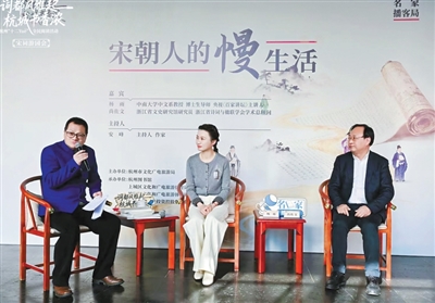 12月28日,南宋德寿宫遗址博物馆,中南大学文学院教授、《百家讲坛》主讲人杨雨,和浙江省文史研究馆馆员、浙江省诗词与楹联学会学术总顾问尚佐文一起探讨“宋朝人的慢生活”。
