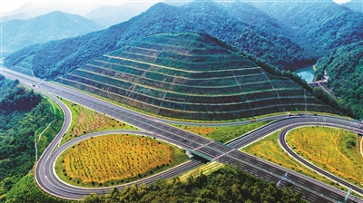 柯诸高速通车当天上午,记者来到这条高速柯桥段现场体验。蜿蜒于青山间的柯诸高速柯桥段福全枢纽,如巨龙缠绕,昂然向前跃飞。