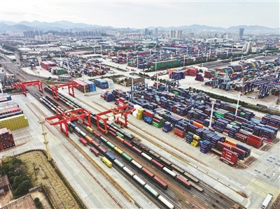 作为宁波舟山港“第六港区”关键枢纽的义乌(苏溪)国际枢纽港,自今年6月底投运以来,仅6个月业务量就突破8万标准箱,单趟装卸作业时间压缩至约2小时以内,目前已是宁波舟山港单月箱量最高的海铁联运业务点,成为海铁联运业务增长“新引擎”。此外,宁波舟山港铁路北仑港站于今年12月3日成功突破“百万箱”大关,成为全国首个“百万箱级”铁路港站,为年业务量创新高提供了坚实保障。