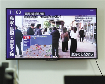 图为新华社记者1月6日在日本东京拍摄的电视画面上显示的地震信息。