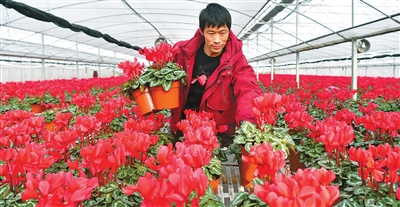 近日,在建德市航头镇园丰园艺种植基地的智能大棚里,花农正在挑选植株健壮、花形丰满的仙客来,经修整包装后发送订单客户。元旦前后,年宵花开始进入销售旺季,该基地采用精控技术培育的各种精品花卉正按预设花期渐次绽放,陆续投放市场,满足持续约两个月的年宵花市需求。