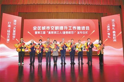 文明的厚度,由一个个鲜活个体铸就。滨江区持续深化典型培育,让榜样星光引领社会风尚。2025年,朱亚威、孙杰两人入选第二季度“浙江好人”,来燕红获评第二十届“杭州市道德模范(平民英雄)”,他们在各自岗位上默默奉献,诠释着平凡中的伟大。青少年是城市的未来,刘卓航、来译心、王靖锟、程诗桐等4位同学入选第二十届“杭州市新时代好少年(美德少年)”,展现了滨江新一代的优良品格。年度盛事——第三届“美丽滨江人(道德模范)”评选发布,更集中表彰了来小钦、张铁钢等10名来自基层、事迹感人的先进人物,为全区树立了可见、可学的道德标杆。从“浙江好人”“杭州好人”到“美丽滨江人”“新时代好少年”,一套覆盖全域、层次丰富的先进典型谱系已然形成,崇德向善在滨江蔚然成风。全国文明单位东冠集团、闻涛社区等,则体现了集体向善的磅礴力量。