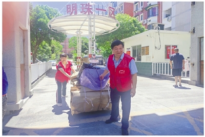 余河昌帮助社区出门不便的居民奶奶整理废纸