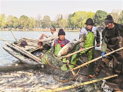 本报讯(记者 王泽英 通讯员 俞陈萍)浙江工业大学之江学院近日举行“骐骥呈祥,鱻泽之江”第五届捕鱼节。现场,20余名捕捞工人齐心协力,拉网吆喝,随着巨网缓缓收紧,鲢鱼、青鱼、草鱼等十几种鲜鱼翻腾跃出水面,7500余公斤湖鲜满载上岸,湖面欢呼声与湖畔喝彩声交织,尽显“欢鱼满塘”的喜庆景象。