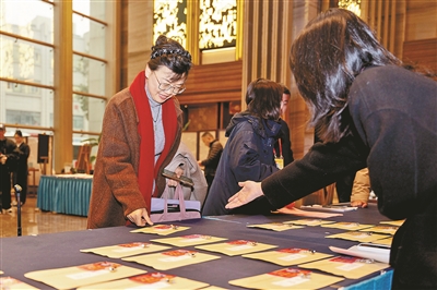 场外,天空飘起雪花;场内,气氛格外热烈。在工作人员的引导下,代表们有序签到、领取证件材料,立即投入会前准备,将带来的议案建议精心整理,并结合各自领域的调研成果,积极为杭州高质量发展献计发声。