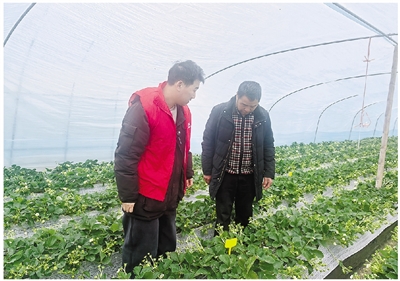 本报讯(记者 黄蓉萍 桐庐微融圈 陈李康)昨天下午,在桐庐县横村镇杭州瑞园农业有限公司的26个草莓大棚内,一排排红艳的草莓掩映在绿叶间。“排水沟封好了吗?双层膜的密闭性还得再过一遍。”横村镇农技人员吴钫杰一边俯身查看草莓长势,一边向该公司总经理严婷仔细叮嘱。此刻,他身旁站着的保险公司工作人员正对照着风险清单,现场指导农户评估寒潮可能带来的减产风险。