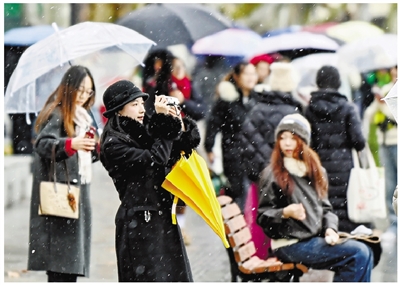 本报讯(记者 俞倩)杭城今年第一场降雪如约而至。昨日,不少市民游客前往西湖断桥一带踏雪赏景。