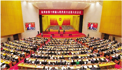 1月21日上午,杭州市第十四届人民代表大会第六次会议隆重开幕。 记者 法鑫 摄