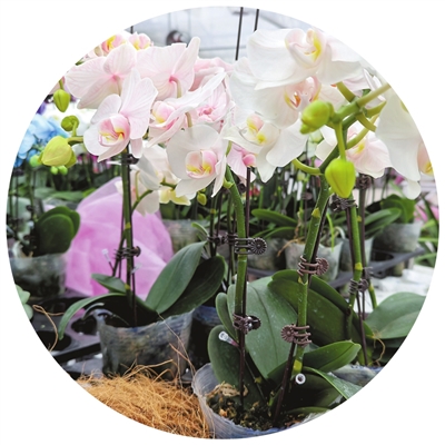 据了解,目前基地内种植蝴蝶兰的面积为200亩左右,春节前能供应超100个品种、共30万株蝴蝶兰。