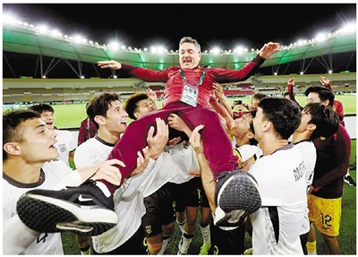 其实,在一次次惊喜的背后,主教练安东尼奥的知人善任和全体队员的三军用命,才是这支中国U23男足走到决赛的关键。以浙江队的刘浩帆、鲍盛鑫为代表的球员,从2018年起就跟随安东尼奥在U16国少队训练。去年9月的U23亚洲杯预选赛前,安东尼奥又进一步确立了球队主打“532阵型”的战术思路。从预选赛到如今打入决赛,中国U23男足7场比赛中仅丢1球,这套以守待攻的打法,可以说非常适配目前的这支球队。而门将李昊,后卫彭啸、刘浩帆,中场徐彬、李镇全,前锋王钰栋、拜合拉木等各具特点的球员,像一枚枚螺纹契合的螺丝钉一般,牢牢钉在安东尼奥所建立的战术体系架构中。