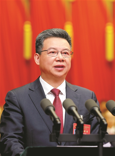1月22日下午,市人大常委会主任暨军民在市十四届人大六次会议第二次全体会议上作市人大常委会工作报告。 记者 法鑫 摄