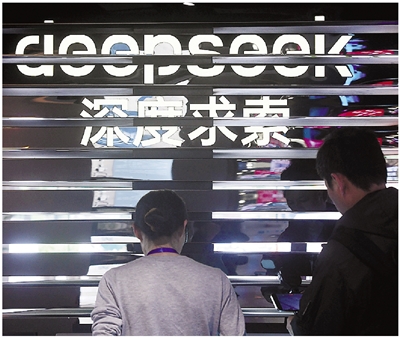 人们在浙江省杭州市文三数字生活街区的AI黑科技市集上体验DeepSeek的人工智能大模型。 新华社发(龙巍 摄)